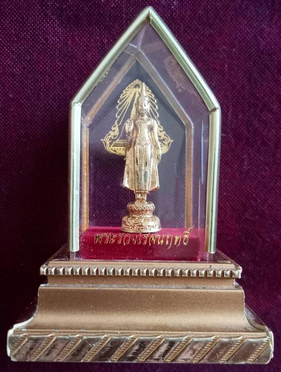 พระบูชาตั้งหน้ารถ หลวงพ่อพระร่วงโรจนฤทธิ์ วัดพระปฐมเจดีย์ จ.นครปฐม เนื้อกะไหล่ทอง พร้อมฐานตั้งและครอบพลาสติกใส พระมีอายุหลายสิบปี สภาพใช้แต่ยังสวยตามรูป ส่งฟรีทั่วไทย รับประกันตามกฎครับ