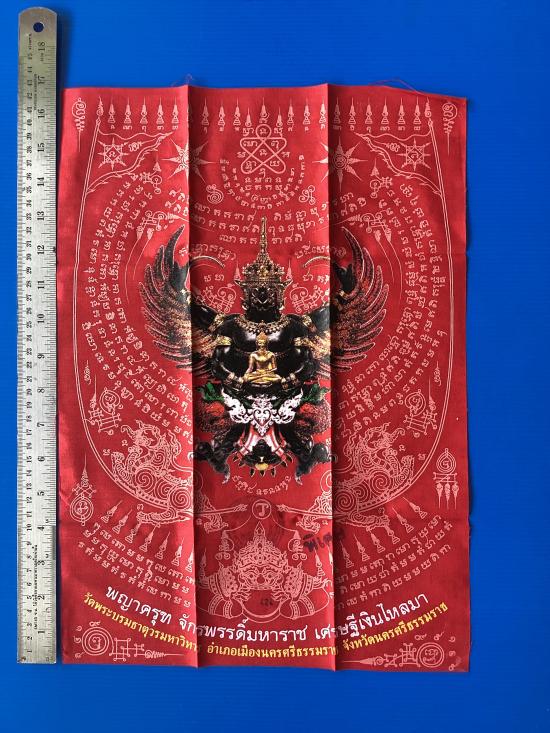 ผ้ายันต์ พญาครุฑ รุ่น เศรษฐีเงินไหลมา วัดพระศรีมหาธาตุวรมหาวิหาร จ.นครศรีธรรมราช สีแดง ขนาด A3 ขนาด 11.5 นิ้ว x 16.5 นิ้ว |
