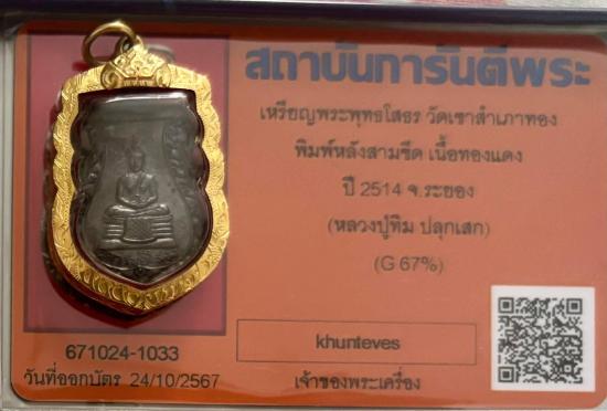 ชื่อพระเครื่อง หลวงพ่อโสธร วัดเขาสำเภาทอง ปี 2514 (หลวงปู่ทิมปลุกเสก) สวยคมชัด เลี่ยมทองสวยๆ