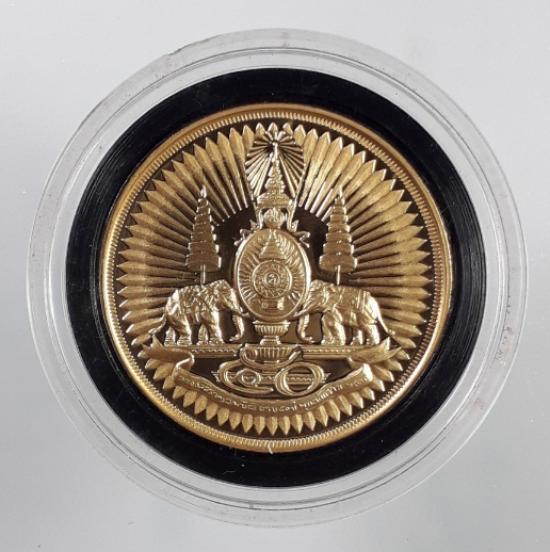 เคาะเดียว...แดง เหรียญตราสัญลักษณ์ ฉลองสิริราชสมบัติครบ 50 ปี พ.ศ.2539 เนื้อชุบทองขัดเงา 2 หน้า ขนาด 3 ซ.ม.