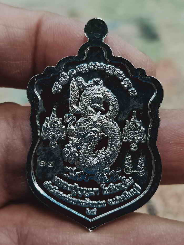 วัดใจ 100 เหรียญเสมาพญามังกร เศรษฐีมั่งมัทรัพย์ หลวงปู่บุญมา สำนักสงฆ์เขาแก้วทอง จ.ปราจีนบุรี 2564 กะไหล่เงิน ลงยา หมายเลข 61 กล่องเดิม