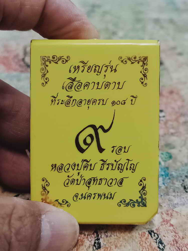 วัดใจ 100 เหรียญเสมาเสือคาบดาบ 9 รอบ หลวงปู่คีบ ธีรปัญโญ อายุ 108 ปี วัดป่าสุทธาวาส จ.นครพนม ปี 2567 สัตตะโลหะ หน้ากากนวะ ขอบนวะ ลงยา หมายเลข 14 กล่องเดิม