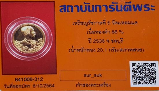 บัตรสภาพสวย เหรียญรัชกาลที่5 เนื้อทองคำ 20.1กรัม