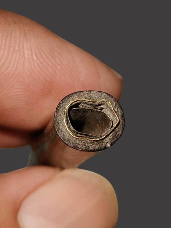 A6728.เครื่องรางของขลังเก่าๆ ตะกรุดยันต์ ไม่ทราบที่ ยาว 2 นิ้ว เคาะเดียวเเดง