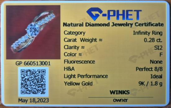 Infinity Ring Grade F 0.28 กะรัต น้ำหนัก 1.8 กรัม Gold 9K พร้อมบัตร G-phet