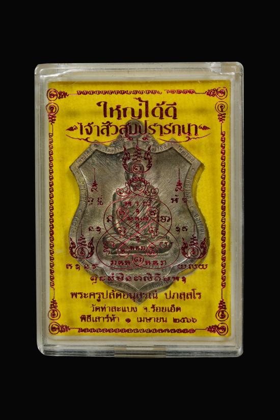 เหรียญพรหมบันดาลทรัพย์ รุ่นใหญ่ได้ดี เจ้าสัวสมปราถนา พระอาจารย์ต้อม วัดท่าสะแบง จ.ร้อยเอ็ด ปี2566 เนื้อสัมฤทธิ์มหาชนวนโบราณ เลข ๒๗๐๙ |