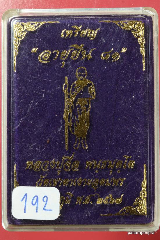 เหรียญพิมพ์ยืน หลวงปู่จื่อ รุ่นอายุยืน๙๑ ปี 2567 เนื้อตะกั่วตอก๙รอบ หมายเลข 192