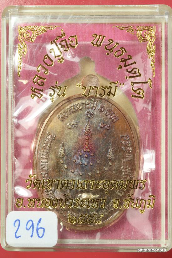 เหรียญหลวงปู่จื่อ รุ่นมงคลบารมี ๖ รอบ ปี 2558 เนื้อทองแดงมันปู หมายเลข 296