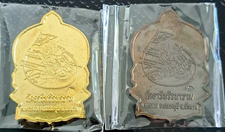 (เคาะเดียว)ทองแดง + กะไหล่ทอง เหรียญนั่งพาน หลวงพ่อกวย กะไหล่ทอง ออกวัดอารีทวีวนาราม (วัดหนองอีดุก) จ.ชัยนาท ที่ระลึกสร้างกุฏิ ปี 61 สวยเดิมพร้อมกล่องเดิม