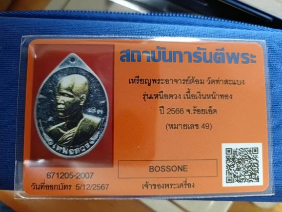 เคาะเดียว เหรียญเหนือดวง รุ่นกฐินพระราชทาน ปี 2566 เนื้อเงินหน้ากากทองคำ เลข 49 ไม่มีกล่อง พระอาจารย์ต้อม วัดท่าสะแบง พร้อมใบเซอร์