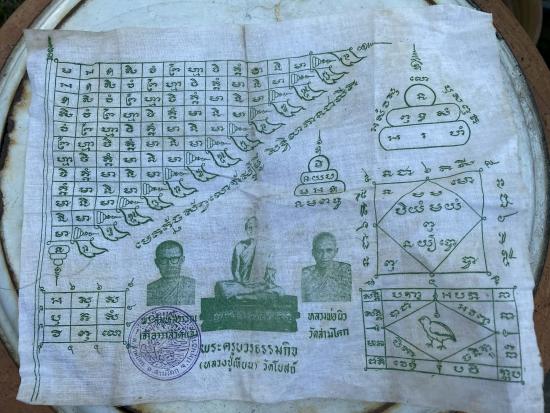ผ้ายันต์หลวงปู่เทียน วัดโบสถ์ ออกวัดแจ้ง ไม่ทราบปีครับ |