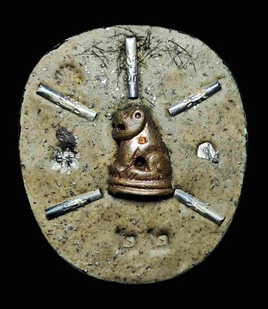 ความสูง 4.5 ซม. ฝังตะกรุดเงิน 5 ดอก มวลสารว่านมหามงคล108 เพชรหน้าทั่ง เหล็กน้ำพี้ เล็บและเกษา |