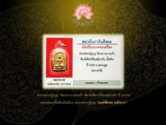 พระหลวงปู่บุญ วัดกลางบางแก้ว พิมพ์เศียรโล้นสะดุ้งกลับ เนื้อดิน ปี2456 จ.นครปฐม ยอดพระเครื่องในตำนาน สภาพสวยสมบูรณ์"องค์พิเศษหลวงปู่จารมือ" เลี่ยมทองยกซุ้ม พร้อมบัตรรับรอง(G-pra)