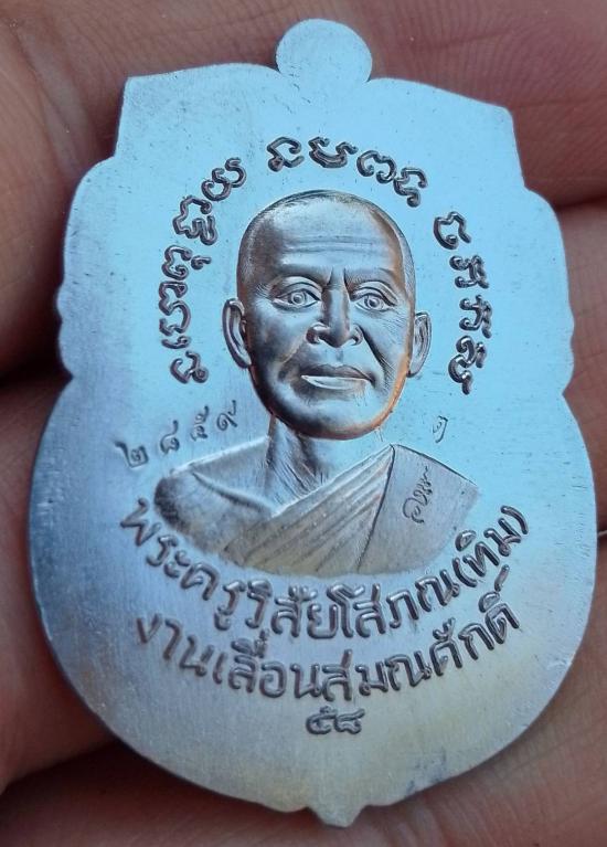 เหรียญเลื่อนสมณศักดิ์หลวงปู่ทวดปี 58 เนื้อตะกั่วไม่ตัดปีก (ชุดเนื้อเงินหน้ากากทองคำ) ตอก Number 2859 พร้อมกล่องเดิมสภาพสวย