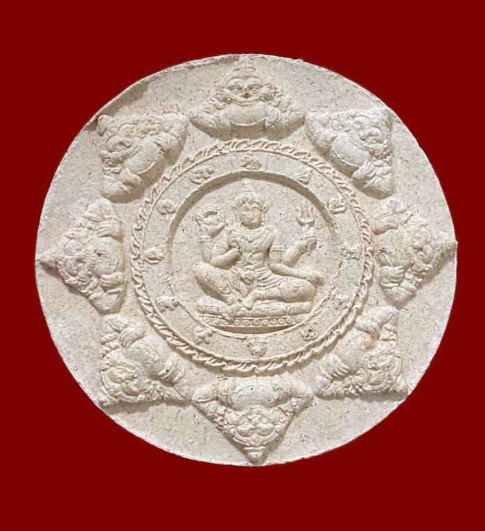 หลวงพ่อทวด จตุคามรามเทพ รุ่นบูรณะหลักเมืองปัตตานี 50 เนื้อผงสีขาว พิมพ์ใหญ่ 5.2 CM. เลเซอร์หมายเลขและโค๊ต