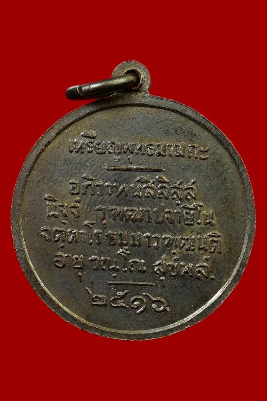 เหรียญพุทธมามกะ สมเด็จญาณสังวร วัดบวรฯ ปี 2516 เนื้อทองแดงรมดำ เก่าเดิม