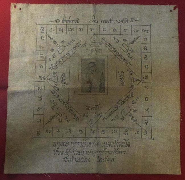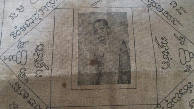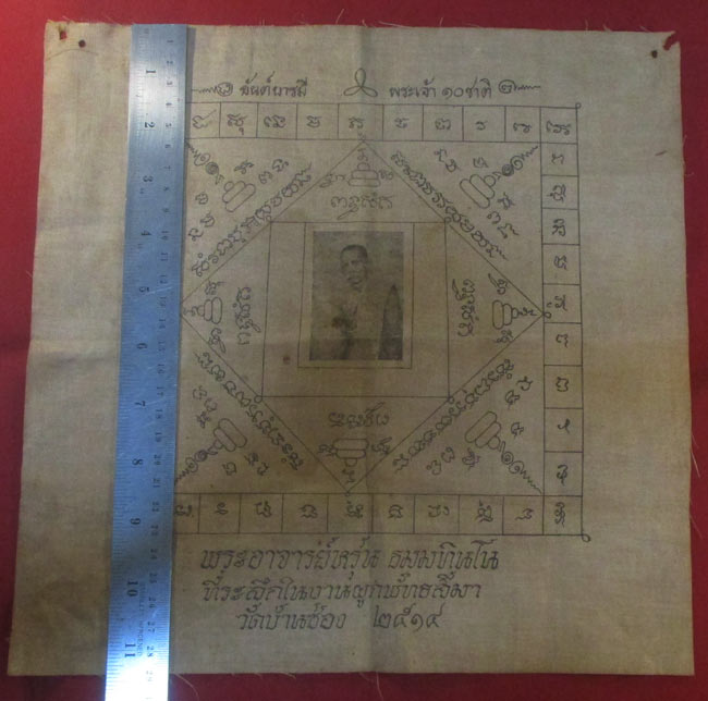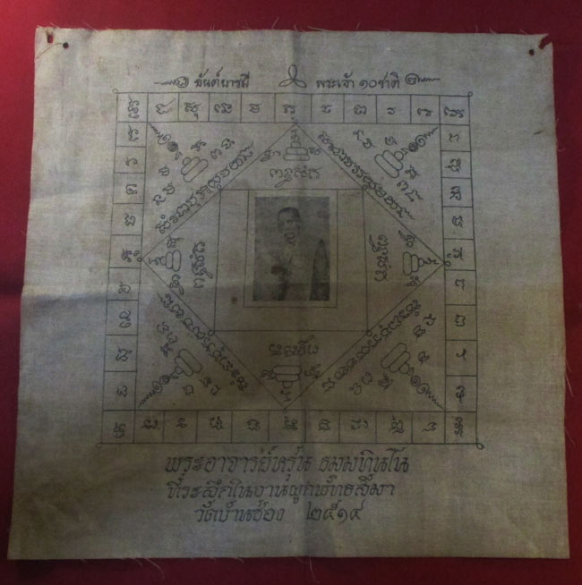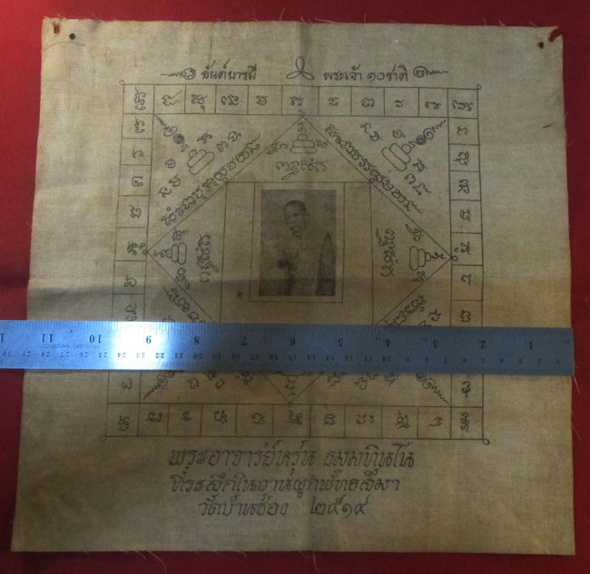 ผ้ายันต์ หลวงพ่อหรุ่น ที่ระลึกในงานผูกพัทธสีมา วัดบ้านช่อง ๒๕๑๔ ครับ (พระบ้าน ครับ) |