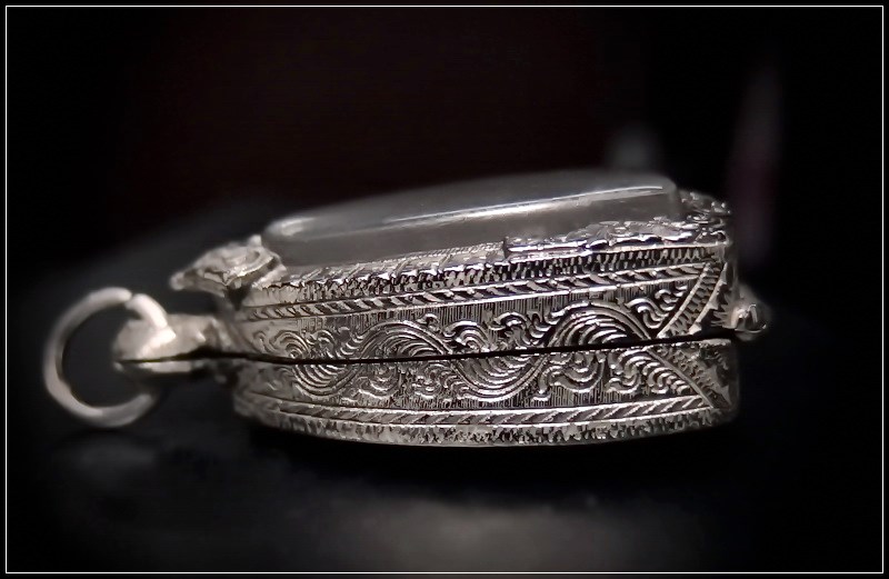 ตลับเงินผสมมือ2ใส่พระรูปหล่อปิดหลัง |