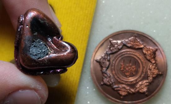ปิดตาพังพะกาฬ เนื้อทองแดง พิมพ์กลาง รุ่น ๑ เทวาลัยจตุคามรามเทพกุยบุรี เนื้อทองแดงผิวรุ้ง สร้างโดย ท่านสรรเพชญ ปี58 (อุดผงยุคต้น ปี30) *** 3 + เหรียญ |