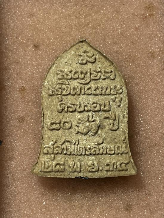 พระผงหลังสิงห์ แบบพิเศษฝังตะกรุดเงิน เนื้อโทนเข้ม ผสมผง5รอบ ปี34 หลวงพ่อเกษมเขมโก