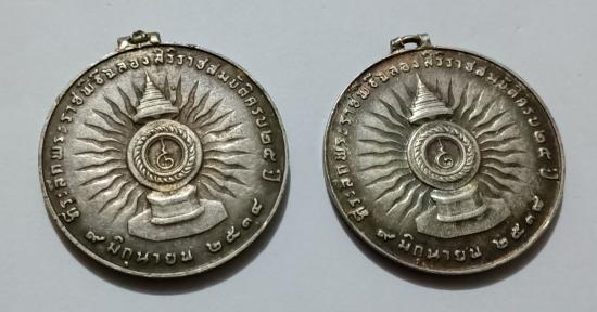 ชื่อพระเครื่อง เหรียญ เนื้อเงิน ร9 ครองราชย์สมบัติครบ 25 ปี รวม2เหรียญ