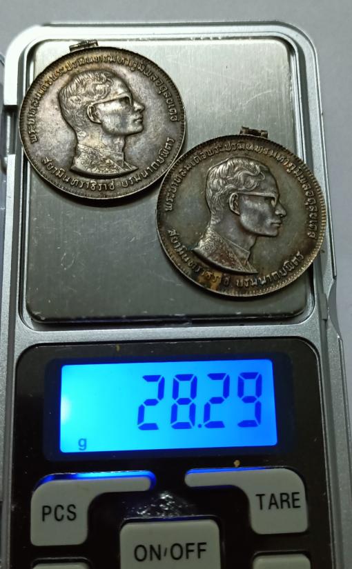 รายละเอียด เหรียญ เนื้อเงิน ร9 ครองราชย์สมบัติครบ 25 ปี รวม2เหรียญ