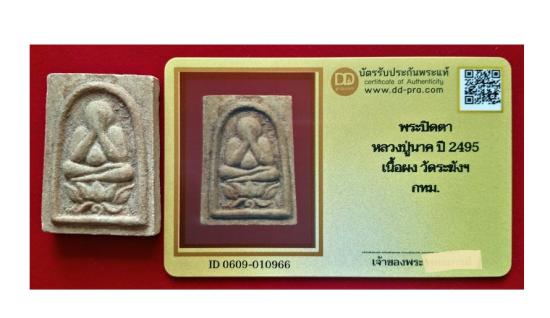 พระปิดตา หลวงปู่นาค ฝังตะกรุด ปี 2495 เนื้อผง วัดระฆังฯ + บัตรรับรอง