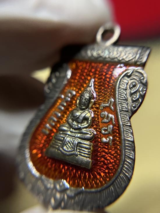 หลวงพ่อโสธร เสมา ปี 2509 เนื้อเงิน ลงยาแดง (บล็อกหลังยันขีด)