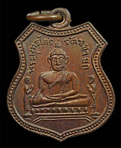 เหรียญอาร์มเล็ก หลวงพ่อโต วัดพนัญเชิง จ.พระนครศรีอยุธยา ปี๒๕๑๗..เนื้อทองแดงรมดำ..สภาพสวยเดิมๆ(ตามภาพ)..สำหรับพระรุ่นนี้มีจัดเป็นรุ่นประสบการณ์อีกรุ่นหนึ่ง..สำหรับเหรียญพระพุทธไตรรัตนนายก วัดพนัญเชิง กรุงเก่า หรือ หลวงพ่อโต วัดพนัญเชิง จ.พระนครศรีอยุธยา ปี๒๕๑๗.. เป็นเหรียญปั๊มมีหูในตัว รูปอาร์ม ด้านหน้า เป็นรูปจำลองหลวงพ่อโตและพระอัครสาวกเบื้องซ้ายเบื้องขวา คือ พระโมคคัลลานะและพระสารีบุตร ที่ประดิษฐานอยู่ภายในพระวิหารวัดพนัญเชิง ด้านบนซ้ายมือเขียนว่า "พระพุทธไตร" ด้านบนขวามือเขียนว่า "ยรัตนนายก" ด้าน หลัง ตรงกลางเป็นอักขระขอม ๔ ตัว คือ "อิสวาสุ" อยู่ภายในขมวดยันต์ช่องละตัว มี ๔ ช่อง ด้านบนเขียนว่า "วัดพนัญเชิงกรุงเก่า" ด้านล่างมีภาษาจีน ๔ ตัว อ่านได้ความว่า "ซำปอฮุดกง"..โดยเหรียญหลวงพ่อโต วัดพนัญเชิง ปี ๒๕๑๗ เป็นอีกเหรียญที่คนเมืองกรุงเก่านิยมเสาะหามาบูชากันมากเพราะนอกจากหลวงพ่อโตจะเป็นพระพุทธศักดิ์สิทธิ์ประจำจังหวัดแล้ว..เหรียญรุ่นนี้ยังเป็นเหรียญที่จัดพิธีพุทธาภิเศกยิ่งใหญ่มากๆอีกด้วย..โดยนิมนต์ยอดพระเกจิ-อาจารย์ มาประกอบพิธีพุทธาภิเษก เมื่อวันอังคาร ที่ ๒๙ ตุลาคม ปี๒๕๑๗ โดยมีพระคณาจารย์ผู้ทรงวิทยาคมทั้ง ๙ รูป