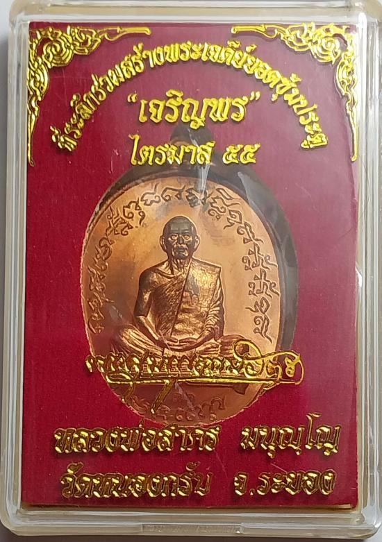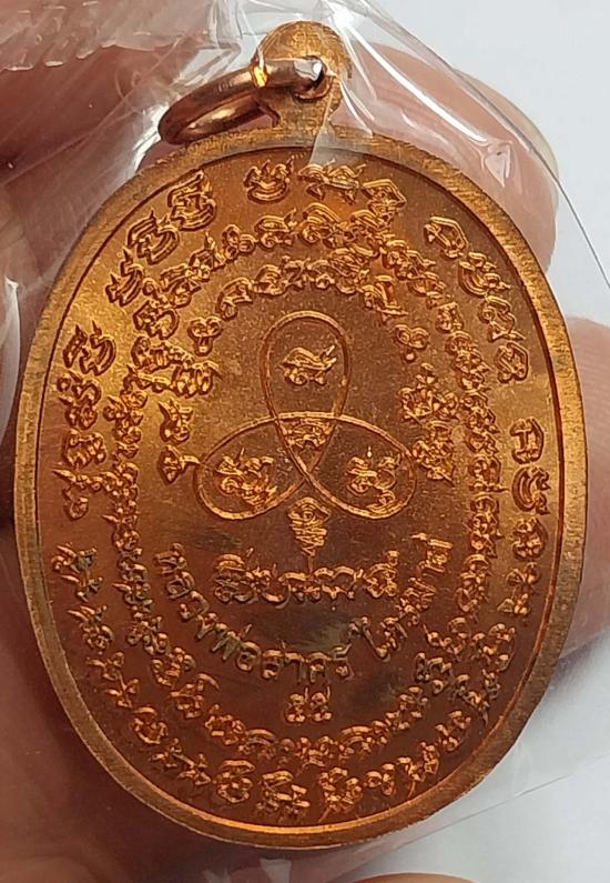 เหรียญเจริญพรไตรมาสเนื้อทองแดง แบบแดงแดง 'หลวงพ่อสาคร วัดหนองกรับ หมายเลข 936 สามหลัก เก้าหน้า สวยๆ ซีลเดิมจากวัด