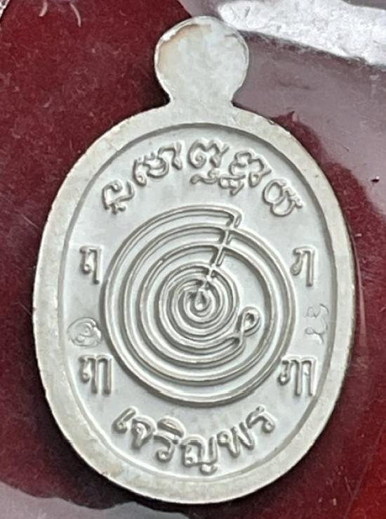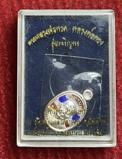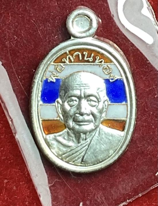เหรียญเม็ดแตง เนื้อเงินลงยาลายธงชาติ หลวงพ่อทอง วัดสำเภาเชย ปี 2554 รุ่นเจริญพร พร้อมกล่องเดิม