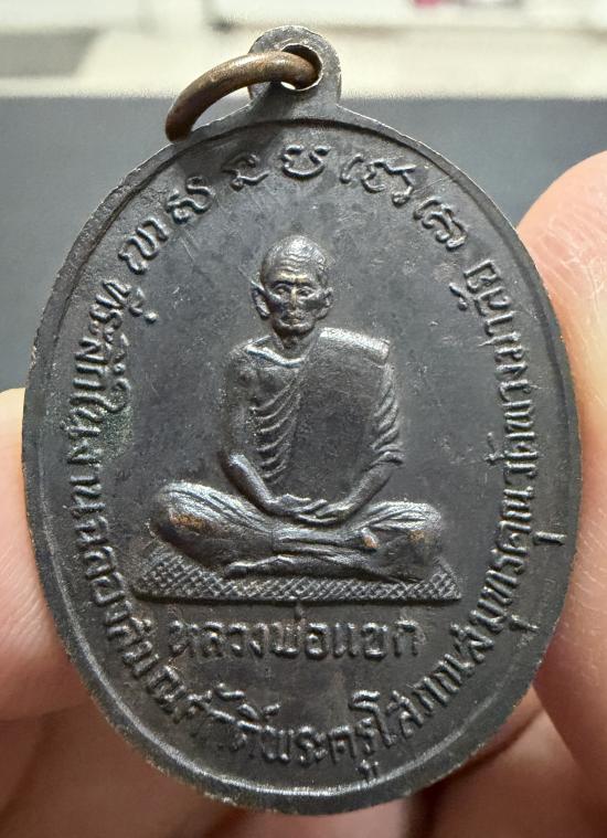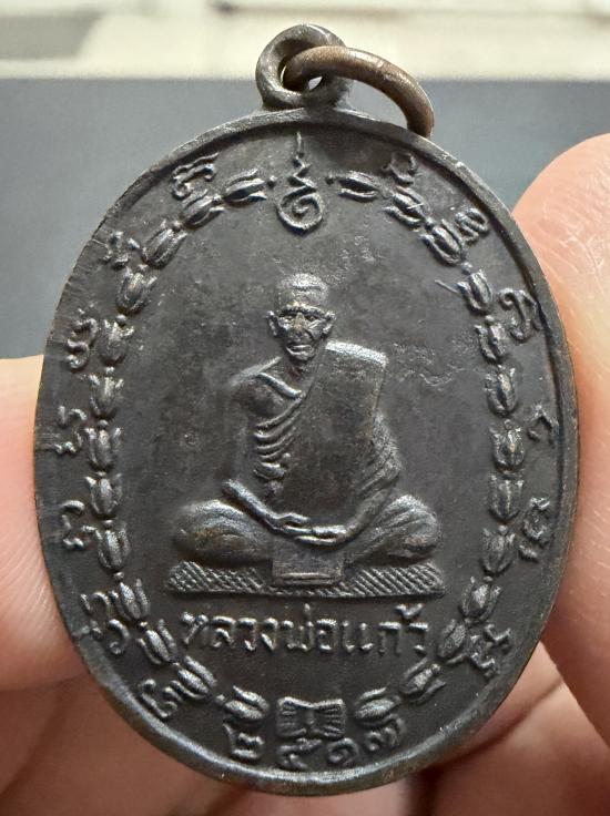 เหรียญหลวงพ่อแก้ว ด้านหลังหลวงพ่อแขก วัดพวงมาลัย จ.สมุทรสงคราม เนื้อทองแดงรมดำ ที่ระลึกในงานฉลองสมณศักดิ์ พระสวยมาก ปี 2517