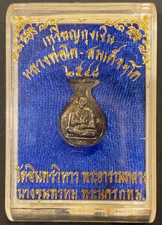 เหรียญเงิน คอน้ำเต้าเล็ก เพิ่มทรัพย์ หลวงพ่อโต วัดอินทรวิหาร ปี 2548 กรุงเทพ ราคาเบาๆ ครับ