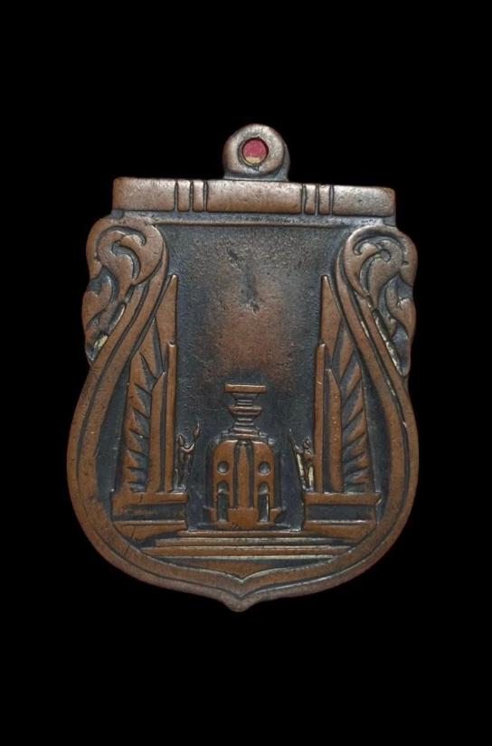 เหรียญสร้างชาติ ที่ระลึกการสร้างอนุสาวรีย์ประชาธิปไตย พ.ศ. 2482 เนื้อทองแดง พิธีใหญ่ หลวงพ่อจาด,หลวงพ่อจง, หลวงพ่อคง, และ หลวงพ่ออี๋ ร่วมปลุกเสก
