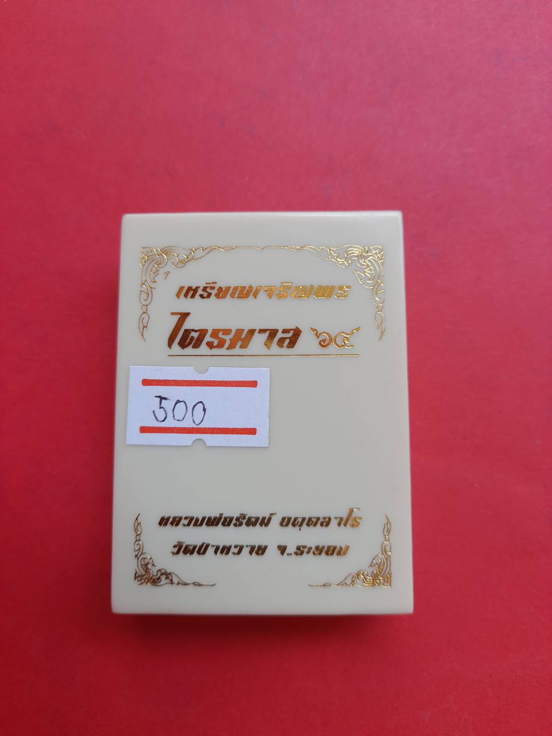 เหรียญ เจริญพรไตรมาส 64 หลวงพ่อรัตน์ วัดป่าหวาย จ.ระยอง เนื้อฝาบาตรผิวไฟลงยาสีน้ำเงินจิวรเหลือง No.500 เหรียญสวยๆอยู่ในซีลเดิม พร้อมกล่องเดิม