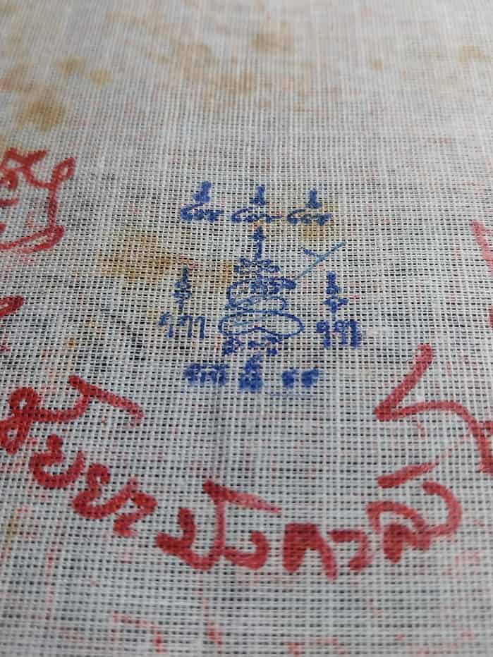ผ้ายันต์ธงผ้ากาสาวพัสตร์ ธงพระรัตนจักรชัยสิทธิ์ หลวงปู่ชื้น วัดญาณเสน จ.พระนครศรีอยุธยา ผืนนี้เป็นผ้าขาวดิบ ขนาด 13x11.5 ซ.ม. |