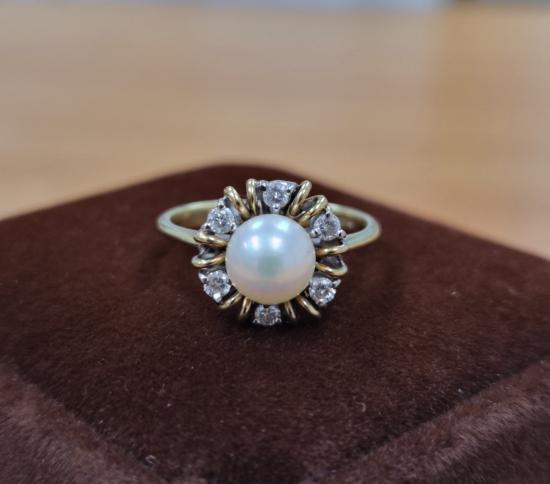 แหวนไข่มุก Akoya ล้อมเพชรแท้