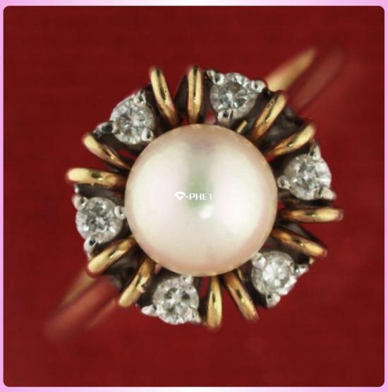 Description Center Stone(1) = Natural Cultured Pearl This also may called "Akoya Pearl" Side Stone(6) = Natural Diamond 0.16 ct. / VVS-VS Color = Near White (GH/น้ำ 97-96) Size 49 (15.6 mm)