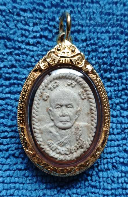 พระผงดวงเศรษฐี หลวงปู่หมุน ฐิตสีโล ปี 2543 ติดเกศา เลี่ยมทอง