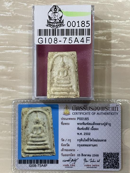 (เคาะแดง3900) +บัตรสมาคม สมเด็จพิมพ์เจดีย์มีหู หลวงปู่ลำภู ลงกรุต้นโพธิ์