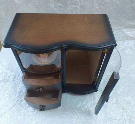 ***วัดใจ***กล่องดนตรีไม้สไตล์วินเทจมีตุ๊กตาเซรามิกหมุนได้ เป็นกล่องเก็บเครื่องประดับ ผลิตโดยบริษัทญี่ปุ่นชื่อ Sankyo