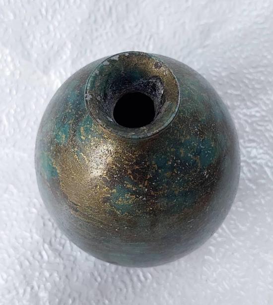 แจกันดอกไม้โลหะสไตล์อิเคบานะ (Ikebana) แบบวินเทจสีเขียวอมฟ้าและสีทอง สูง 5 นิ้ว