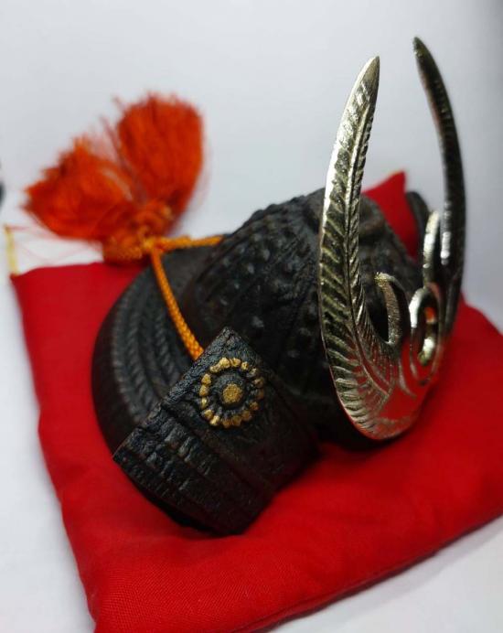 ***วัดใจ***หมวกซามูไรจำลองของโทกูงาวะ อิเอยาซุ (Tokugawa Ieyasu) ขนาดเล็ก เหล็กหล่อ งานเก่าญี่ปุ่น งานสะสม พร้อมที่รอง