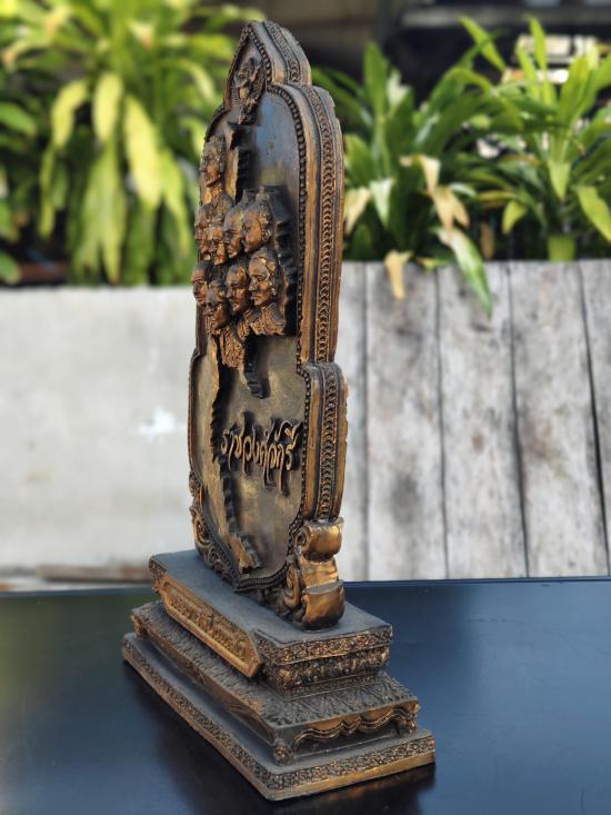 แผ่นบูชาราชวงศ์จักรี พิธีสมโภชกรุงรัตนโกสินทร์ 200 ปี พ.ศ.2525 กว้าง5.5 นิ้ว สูง12 นิ้ว ฐานกว้าง 7 นิ้ว