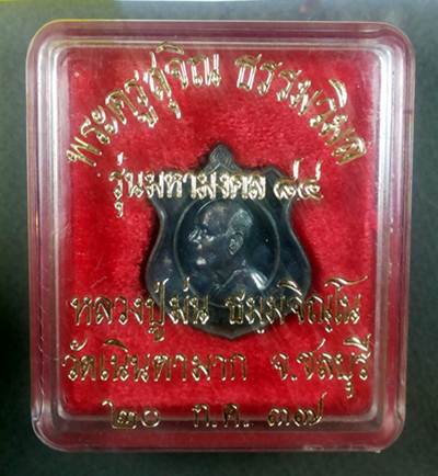 เหรียญหลวงปู่ม่น เนื้อเงิน รุ่นมหามงคล 84 วัดเนินตามาก จ.ชลบุรี ปี 2537 (กล่องเดิม) |