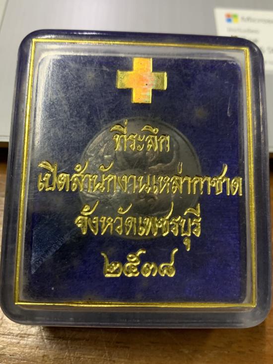 เหรียญที่ระลึกเปิดสำนักงานเหล่ากาชาด จ.เพชรบุรี พ.ศ.2538 เนื้อเงิน หนัก 15 กรัม พร้อมกล่องเดิม