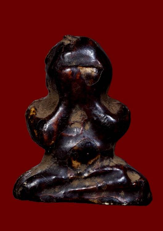 พระปิดตาเนื้อผงเคลือบรักเก่าไม่ทราบที่