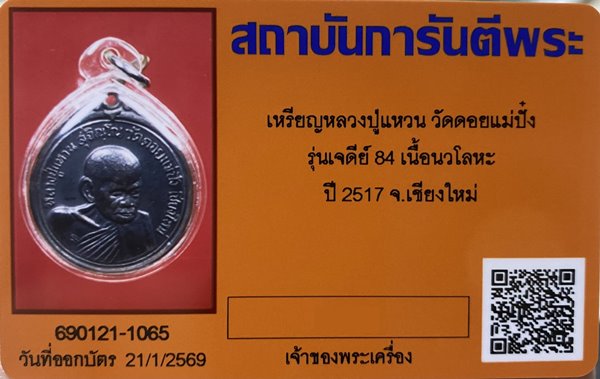 +_+_เหรียญกลมสร้างเจดีย์ 84 หลวงปู่แหวน วัดดอยแม่ปั๋ง ปี พ.ศ 2517 เนื้อนวโลหะ_+_+