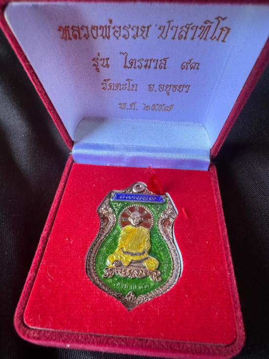 HOT!!! เหรียญไตรมาส 93 เนื้อเงินลงยาสีเขียว ปี 2557 เลข 599 หลวงพ่อรวย วัดตะโก พร้อมกล่องเดิม