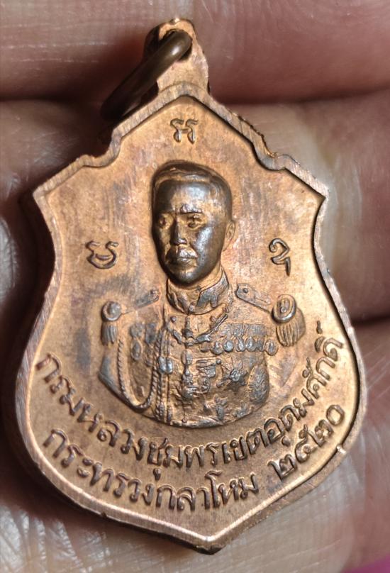 เหรียญหลวงปู่แหวน หลัง กรมหลวงชุมพร (เสด็จเตี่ย) เนื้อทองแดง วัดดอยแม่ปั๋ง ปี 2520 |